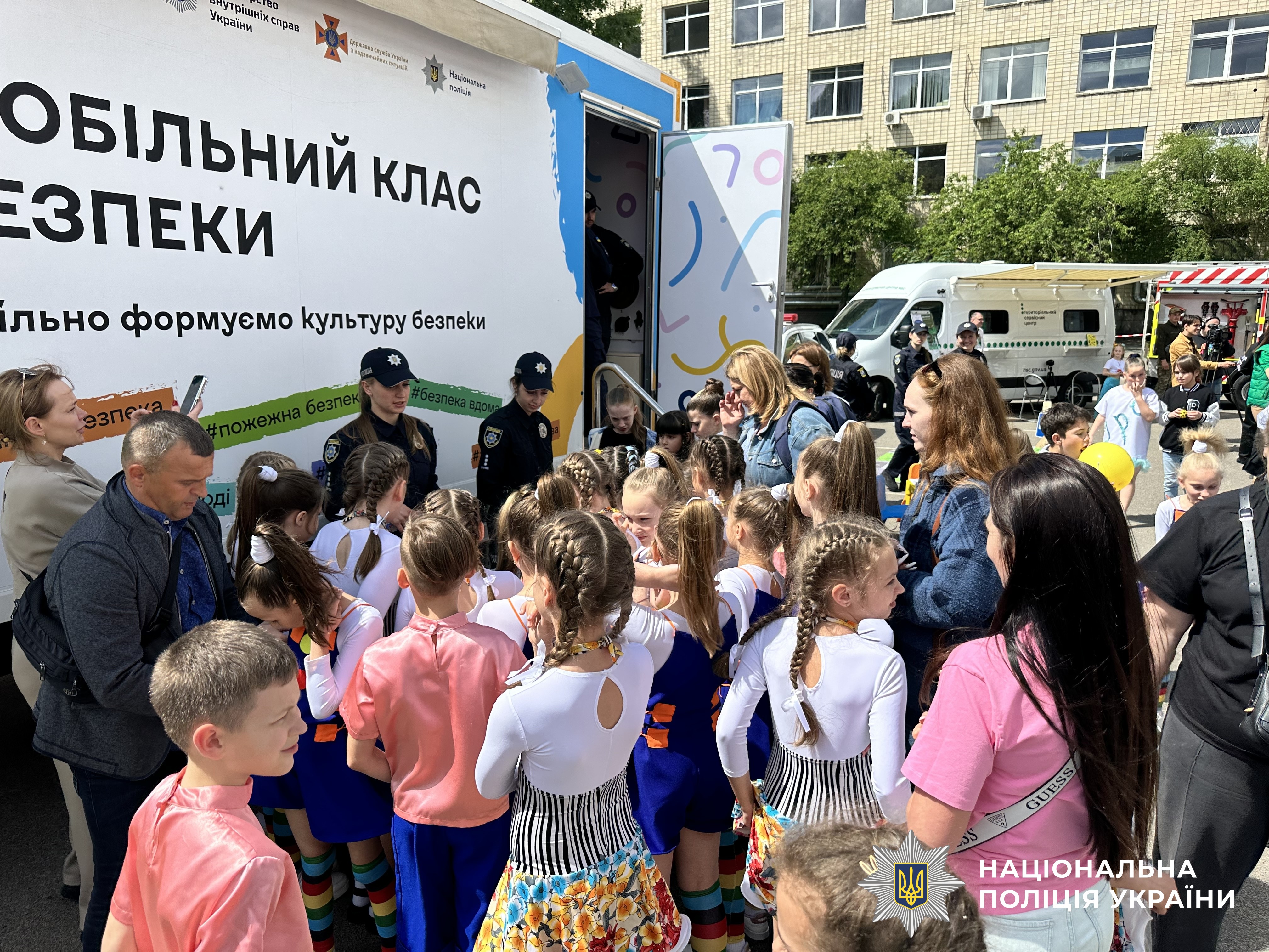 Дітки отримали корисну і цікаву інформацію про основні правила безпеки життєдіяльності, відвідали мобільний клас безпеки та пересувний мобільний сервісний центр МВС. Також, правоохоронці познайомили школяриків з поліцейським автомобілем, а працівники ДСНС розповіли про особливі можливості пожежної автівки.
