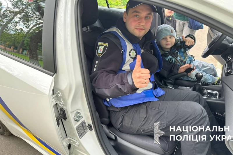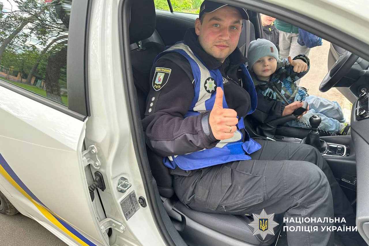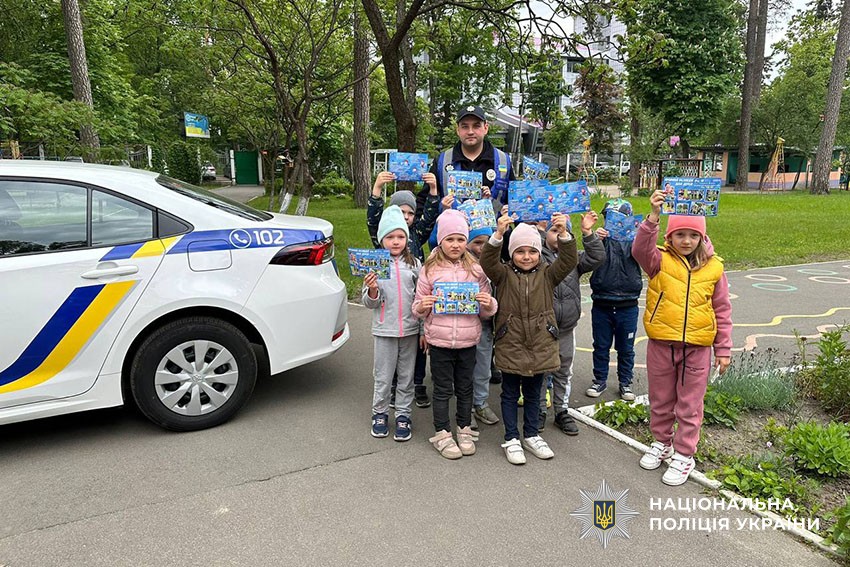 Наприкінці заходу дітки мали змогу посидіти в службовому автомобілі та отримали від правоохоронців пам’ятки із правилами безпеки.