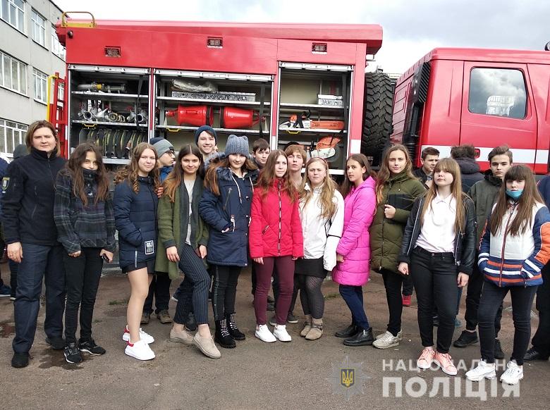 Завершилася профілактична бесіда справжнім сюрпризом, адже кожен школяр міг оглянути пожежну машину та побачити, як за допомогою вогнегасника та міни, можна ліквідувати вогонь.