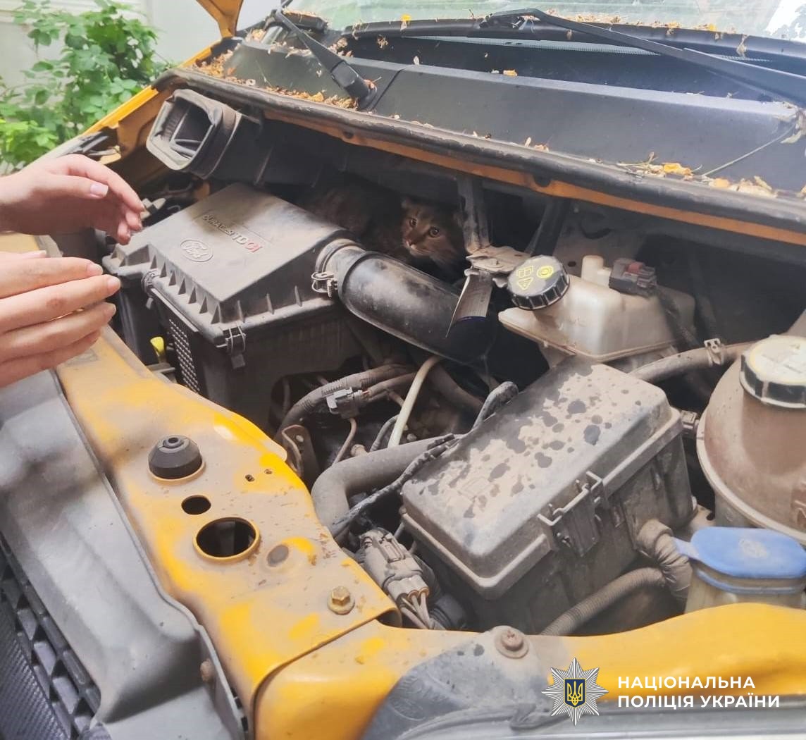 З проханням про допомогу до правоохоронців звернувся мешканець Печерського району - чоловік розповів, що на його очах кішка залізла під капот автомобіля.