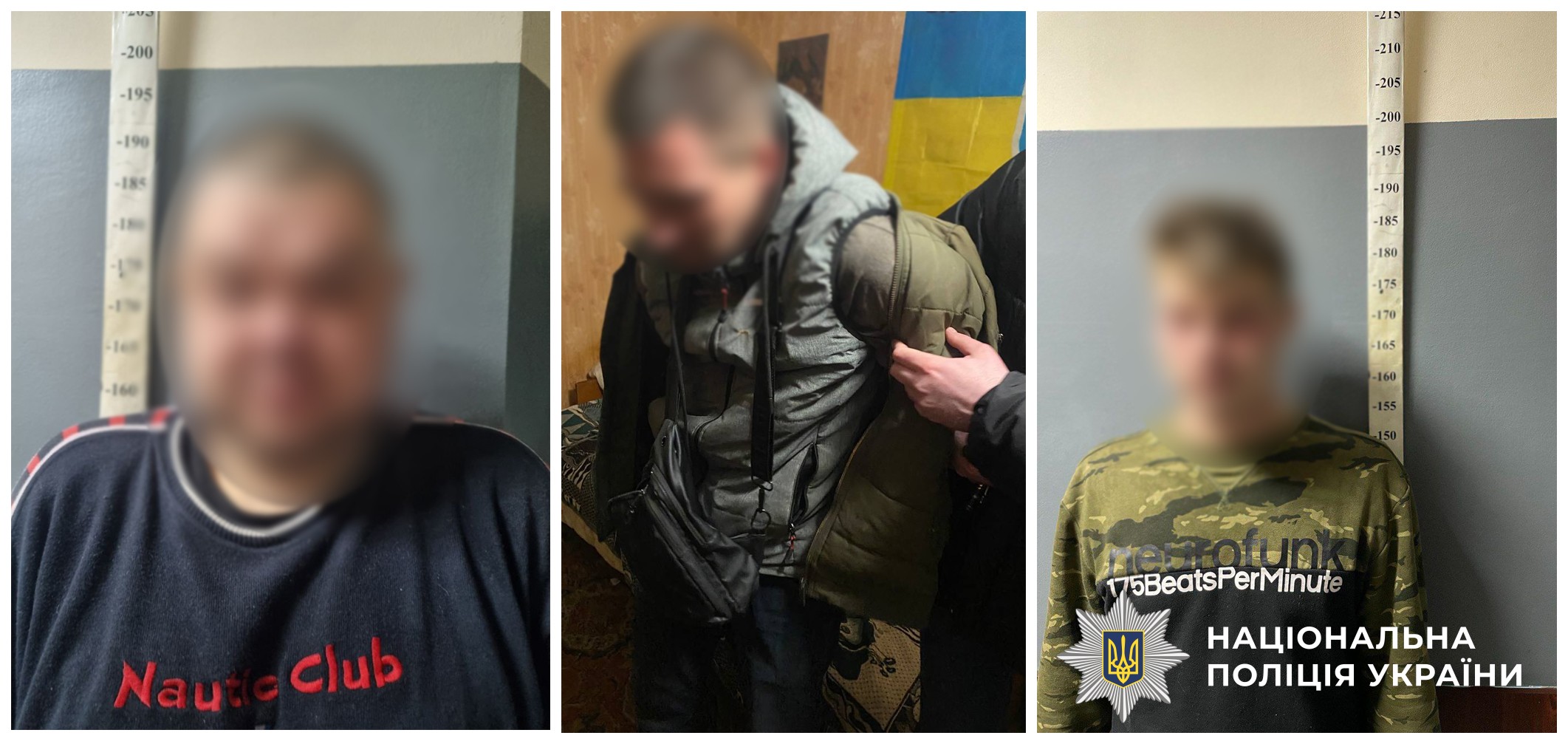 Одного з нападників поліцейські затримали за місцем проживання, двох інших – за місцем мешкання їх спільного знайомого. Порушниками виявились місцеві мешканці, віком від 29-ти до 38-ми років, двоє з яких раніше притягувались до кримінальної відповідальності за вчинення майнових злочинів. Під час обшуків поліцейські вилучили речі потерпілого, зокрема гроші, частину з яких зловмисники вже встигли витратити.