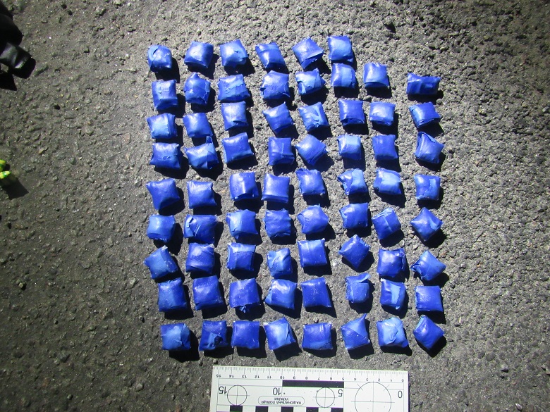 Наркозбувача поліцейські викрили у лісопарковій зоні під час розкладання забороненої речовини. У ході слідчих дій правоохоронці вилучили більше 100 згортків з психотропною речовиною. За скоєне йому загрожує до десяти років позбавлення волі з конфіскацією майна.