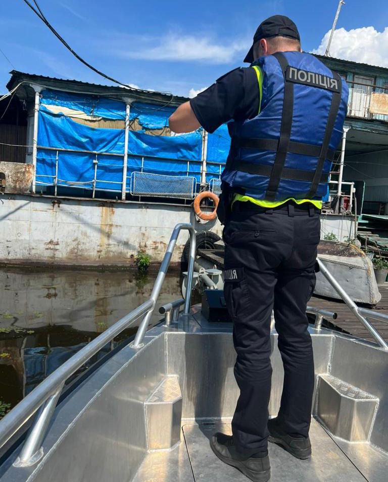 До співробітників відділу річкової поліції надійшли матеріали управління стратегічних розслідувань міста Києва, про те, що невідомі особи незаконно отримали право власності на частину земельної ділянки в центрі столиці. Поліцейські перевірили отриману інформацію та за вказаною адресою виявили охоронювану та огороджену територію на прибережно-захисній смузі з виходом на річку Дніпро, на якій розміщувалась база для стоянки суден.