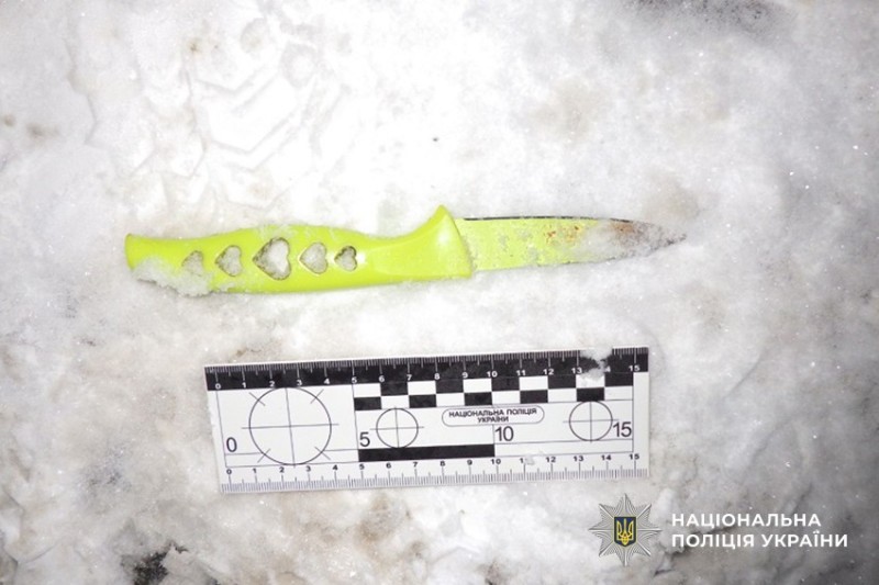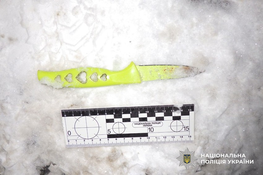 «Під час застілля жінка зчинила сварку під час якої вдарила потерпілого ножем у живіт. Присутні у квартирі очевидці події викликати потерпілому «швидку» та поліцію. Медики госпіталізували потерпілого до лікарні, а слідчо-оперативна група вилучила з місця події ніж та інші речові докази. Зловмисницю, місцеву мешканку 1988 року народження, затримали в порядку статті 208 Кримінального процесуального кодексу України».