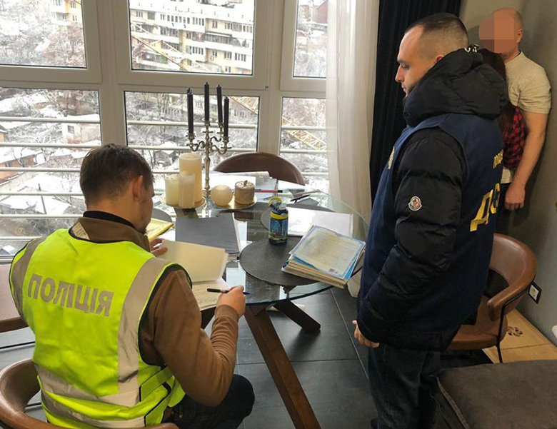 Також поліцейські провели ряд санкціонованих обшуків за місцем мешкання шахраїв, у ході яких були виявлені та вилучені різні технічні документи, договори та два автомобілі.
