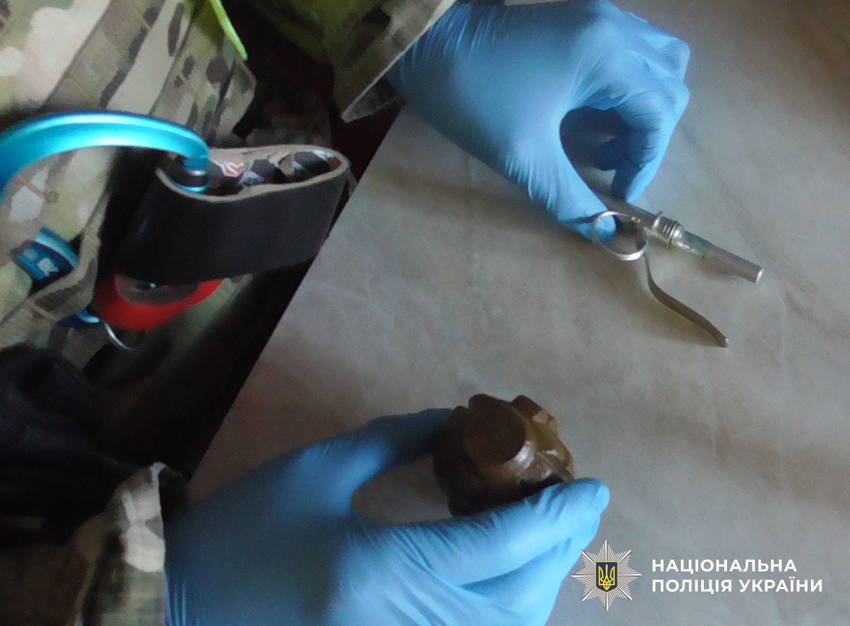 Правоохоронці затримали чоловіка в порядку статті 208 Кримінального процесуального кодексу України та у ході слідчих дій вилучили корпус та запал до гранати Ф-1. Оперативники встановили, що підозрюваний – військовослужбовець, який перебуває у СЗЧ.