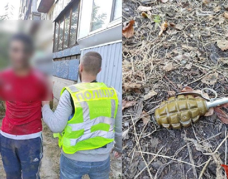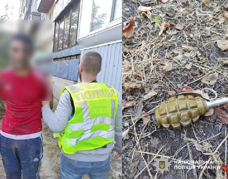Поліцейські затримали зловмисника поблизу місця проживання у порядку ст. 208 Кримінального процесуального кодексу України. Під час поверхневої перевірки правоохоронці виявили в його особистих речах гранату «Ф-1» із запалом.