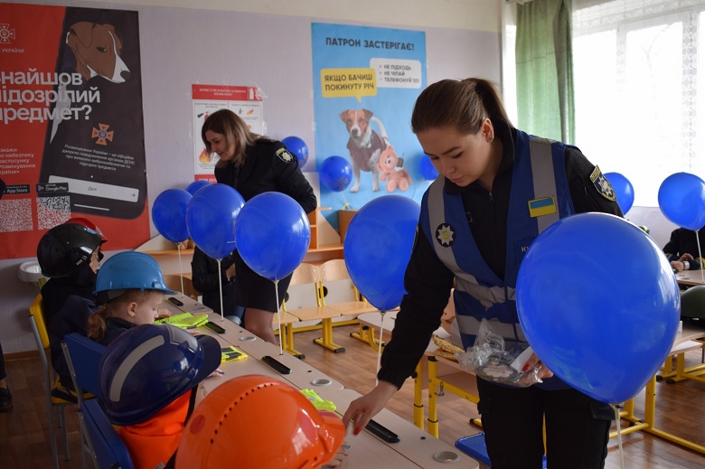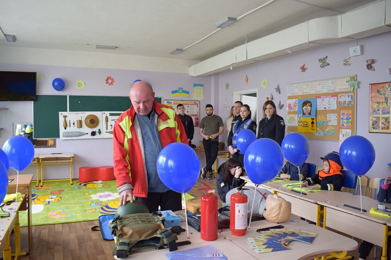 На початку уроку школярам був представлений відеоролик, як поводити себе у разі виявлення вибухонебезпечних предметів на вулиці. Також рятувальники показали учням, як користуватись вогнегасником у разі винекнення пожежі.