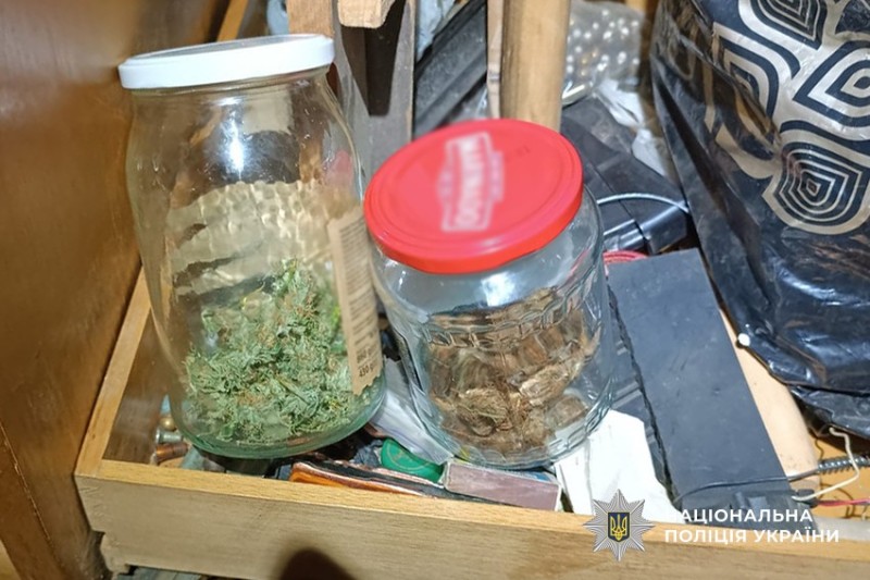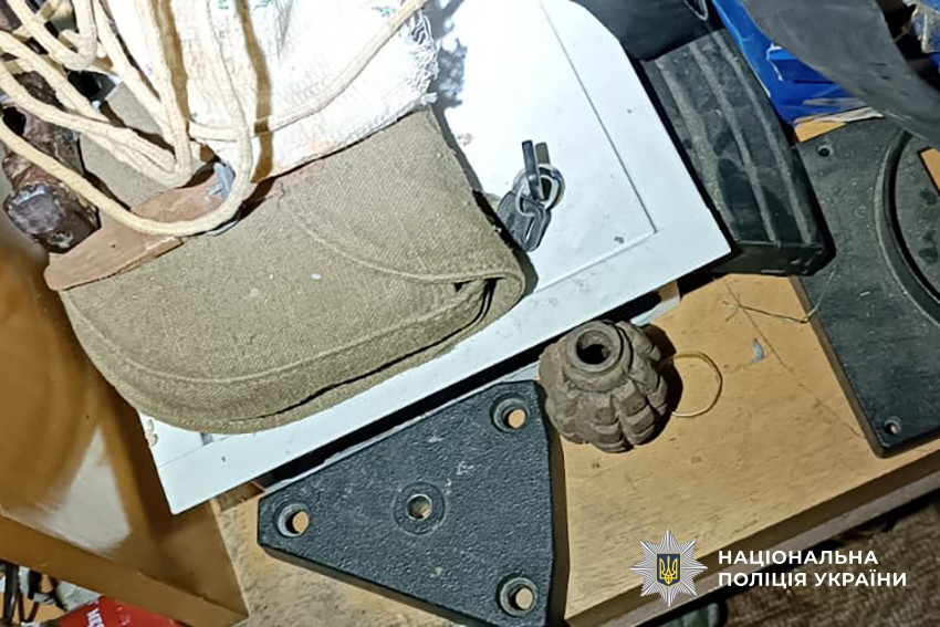 Слідчі Солом’янського управління поліції в ході проведення невідкладного обшуку житла чоловіка вилучили частини до вогнепальної зброї, гранати, міни, набої різного калібру, а також декілька склянок із канабісом.