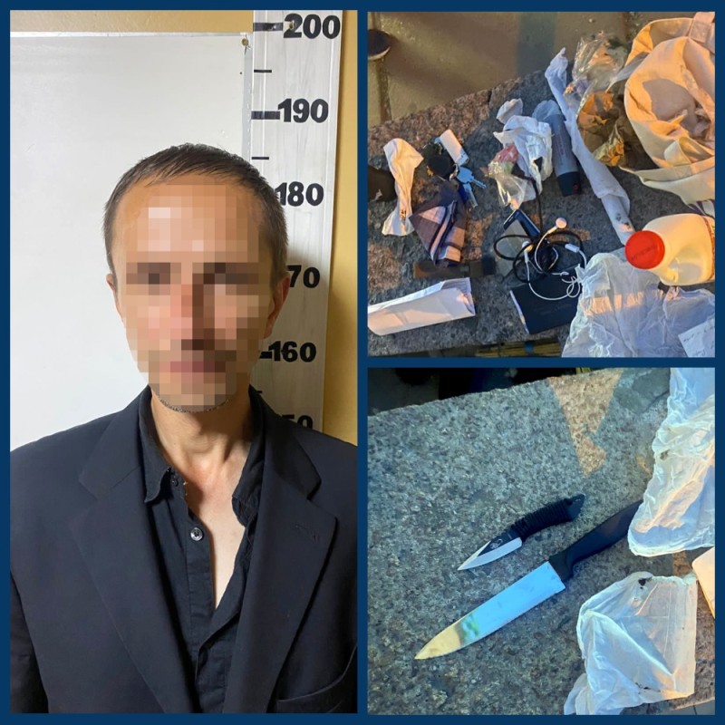 До поліції Києва на спецлінію 102 надійшло повідомлення від місцевої мешканки про те, що біля магазину на вулиці Якуба Коласа, у Святошинському районі міста, невідомий чоловік чіпляється до людей та розмахує ножем. За декілька хвилин на місце прибули патрульні поліцейські та слідчо-оперативна група територіального підрозділу.