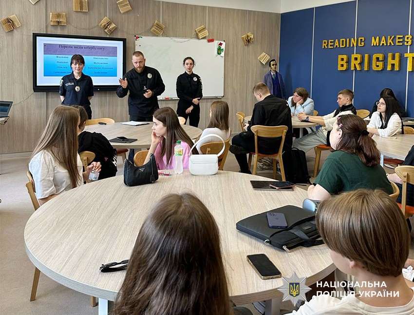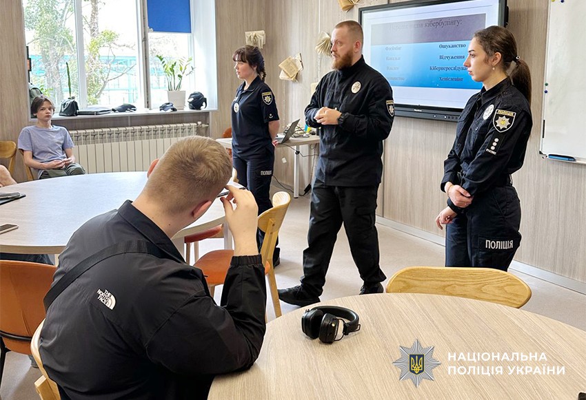 Поліцейські розповіли учням про правила безпеки в Інтернеті та як не стати жертвою кібербулінгу.