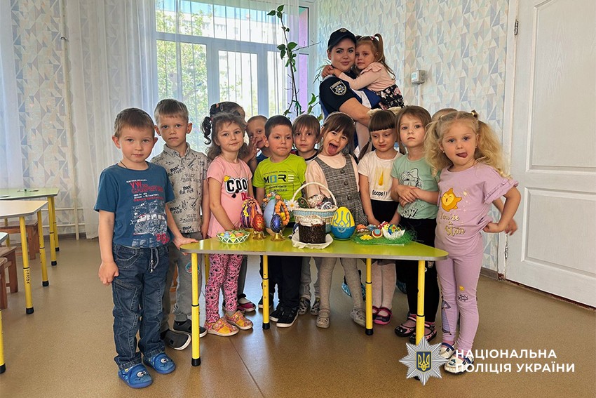 Разом з малечею правоохоронці влаштували майстер-клас з розмальовування писанок. Маленькі художники з ентузіазмом взялись до роботи, розписуючи писанки різнобарвними орнаментами та прикрашаючи їх жовто-блакитними кольорами.