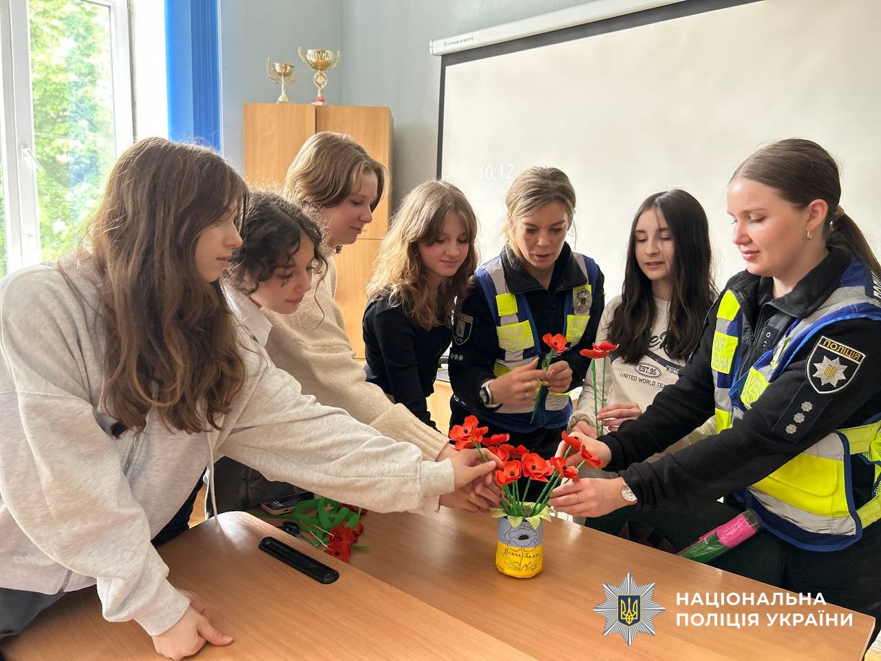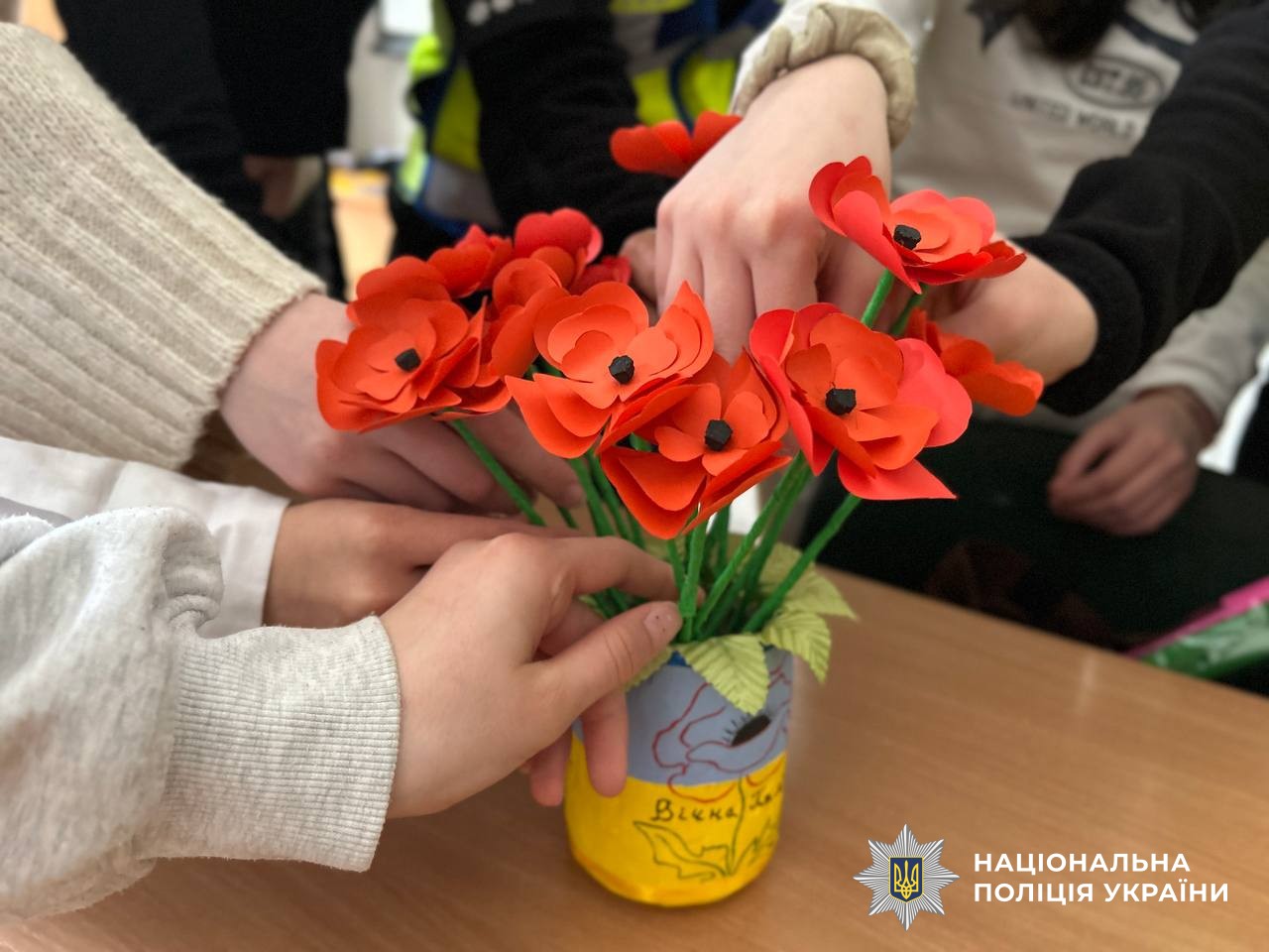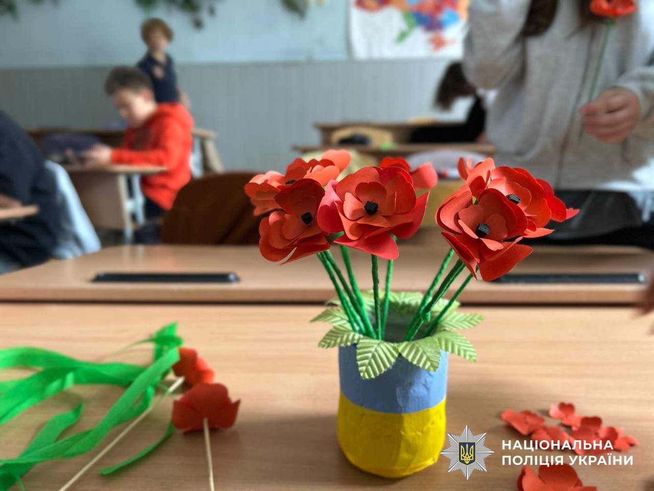 Сьогодні, у День пам’яті та примирення, школярі разом із працівниками ювенальної поліції вшанували пам’ять загиблих та висловили вдячність усім, хто захищає мир, створивши власноруч символічні маки.