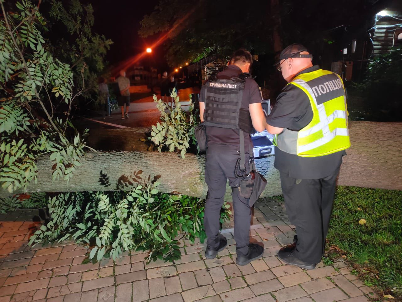 Повідомлення про подію надійшло до поліції близько восьмої години вечора. Внаслідок падіння дерева в парку у центральній частині міста травмовано чотирьох громадян - чоловіка та трьох жінок. Потерпілих каретою швидкої допомоги госпіталізовано до лікарні, де одна з жінок, внаслідок отриманих травм, померла. Ще одна жінка знаходиться у важкому стані.