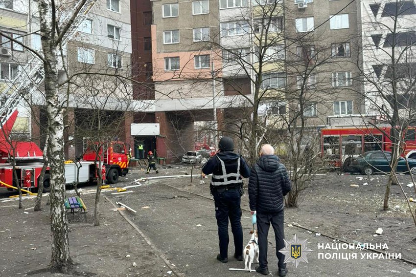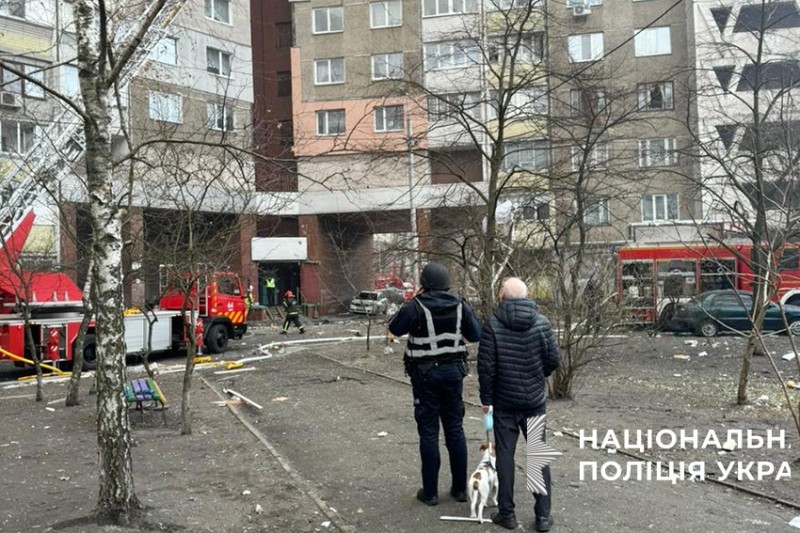 Поліцейські працюють на місцях влучань та допомагають ліквідовувати наслідки ракетного обстрілу.