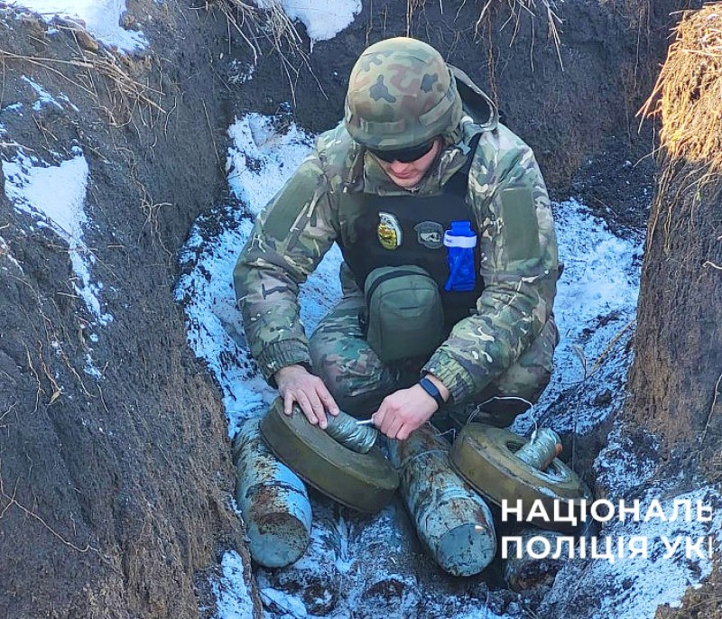 Під час робіт в Ізюмському районі поліцейські виявили дворядне протитанкове мінне поле з мінами ТМ-62М та підривачами МВЧ-62. Знайдений ворожий арсенал правоохоронці вилучили та підірвали.