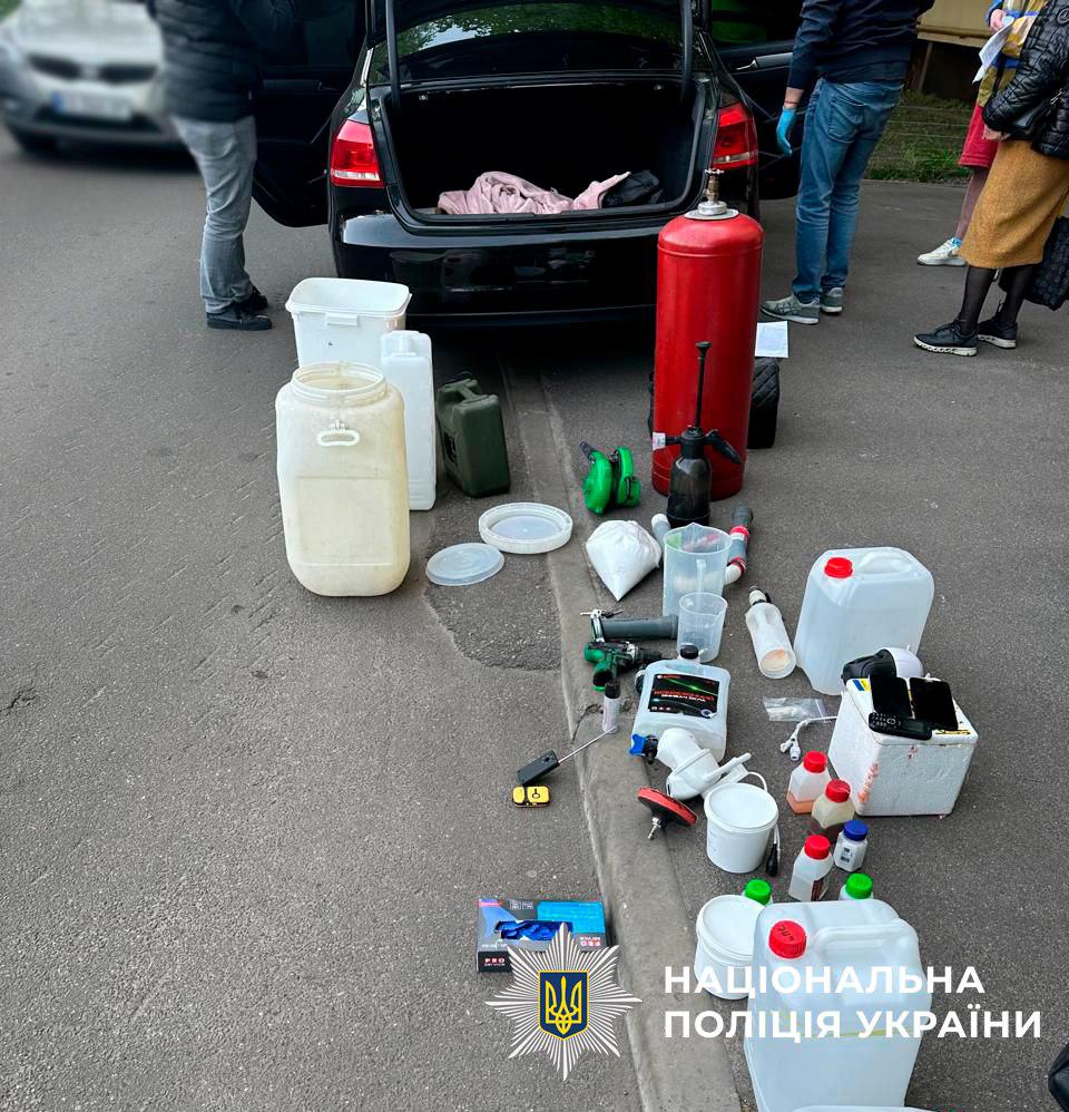 У ході проведення оперативних заходів поліцейські встановили, що 40-річний житель столиці, який раніше притягувався до кримінальної відповідальності за вчинення майнових та наркозлочинів спільно із 50-річним киянином облаштували на території столиці та Київської області нарколабораторії з виготовлення амфетаміну. Зокрема, вони долучили до злочинної діяльності сімох місцевих мешканців, яким доручили виготовляти та збувати психотропну речовину.