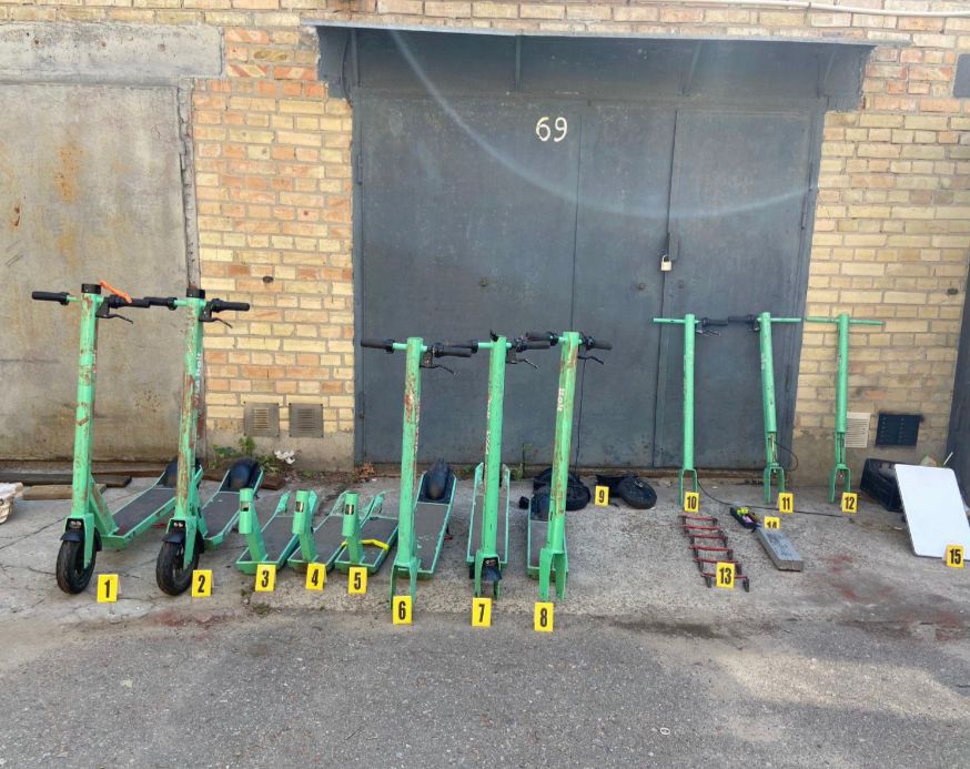 Чоловіка затримали у порядку ст. 208 Кримінально процесуального кодексу України. Зловмисником виявився киянин, 1983 року народження. У ході проведення невідкладного обшуку у гаражному приміщенні правоохоронці вилучили 10 електросамокатів у зібраному та розібраному стані, а також інші деталі до них.