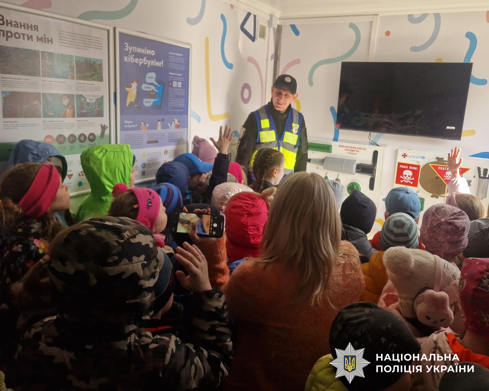 Під час заходу поліцейські за допомогою макетів показали, який мають вигляд вибухонебезпечні пристрої, пояснили алгоритм дій при їх виявленні, аби в умовах сьогодення дитина могла правильно відреагувати на знахідку.