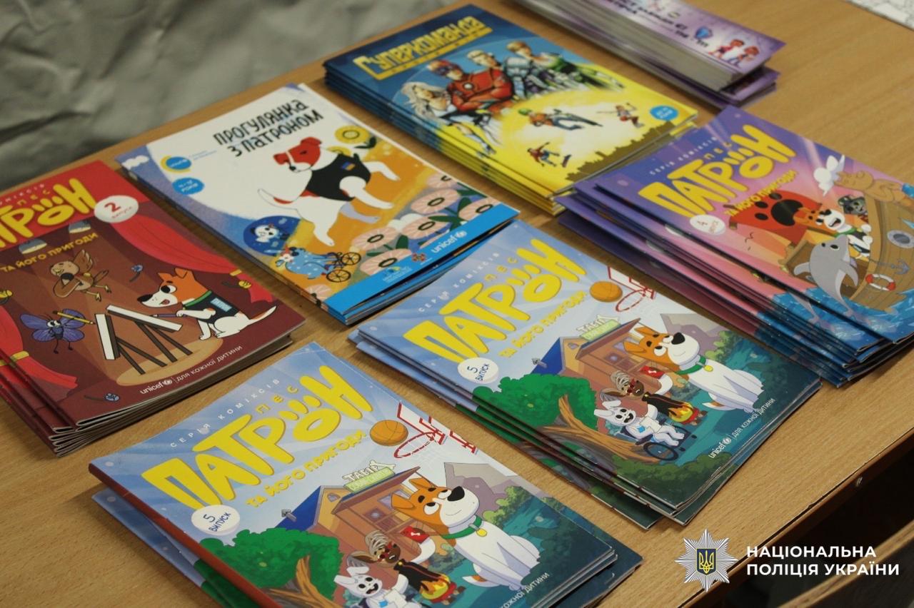 Правоохоронці подарували дітлахам пам’ятки з номерами телефонів екстрених служб, аби у разі потреби вони знали де знайти необхідний номер, а також яскраві комікси, у яких доступно та зрозуміло для дітей роз’яснюються правила безпечної поведінки.