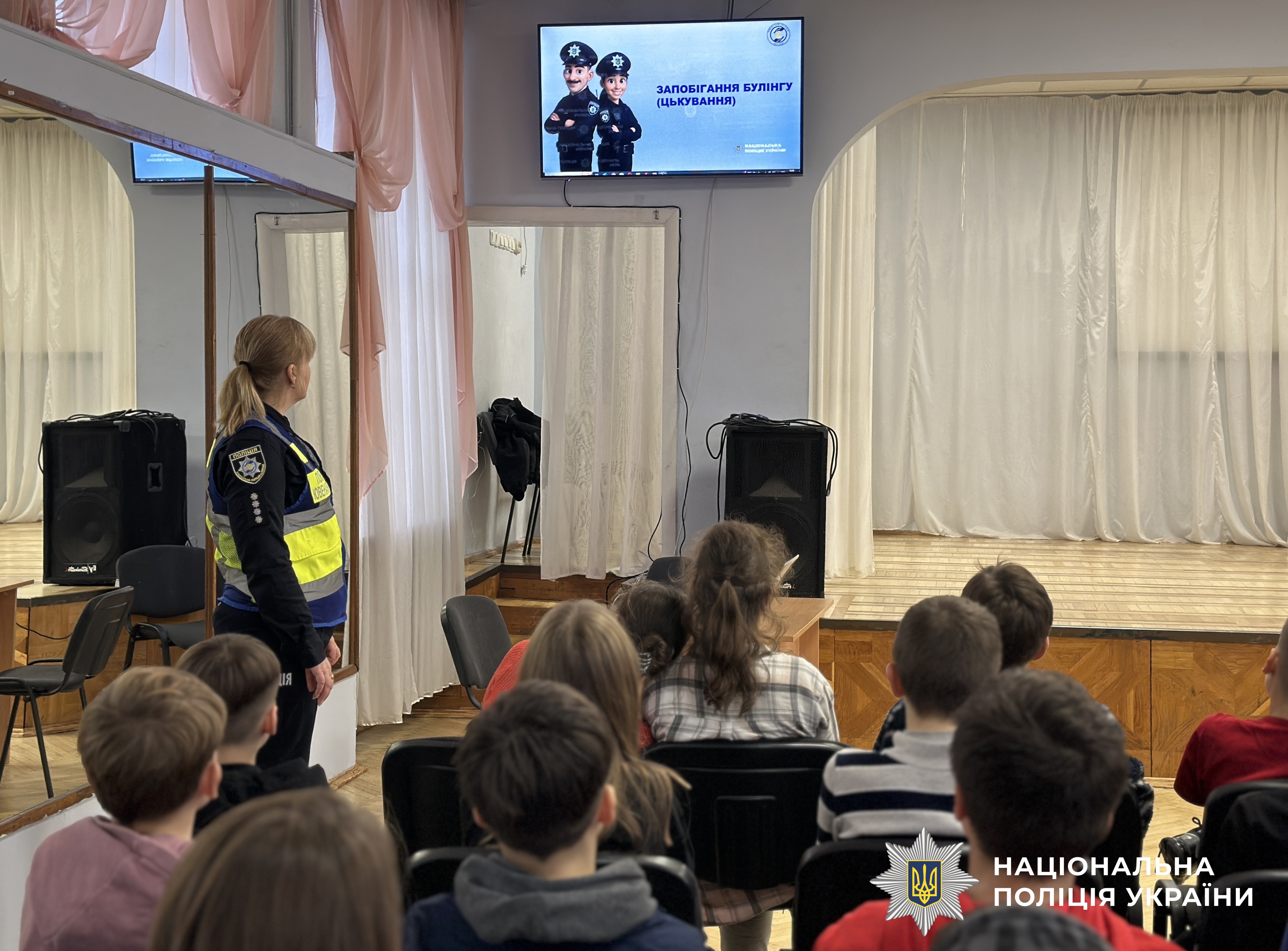 Охоронці порядку звернули увагу дітей на те, що важливо не бути байдужими спостерігачами, а й підтримувати тих, хто потребує допомоги, та повідомляти про будь-які прояви насильства.