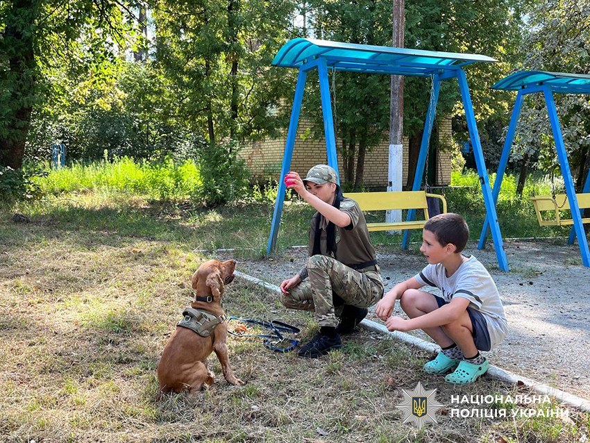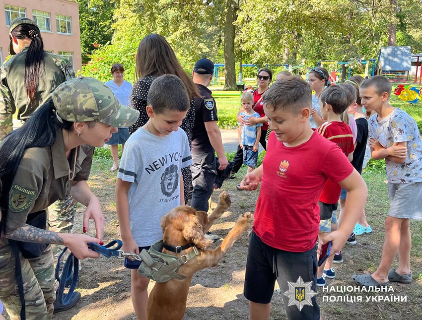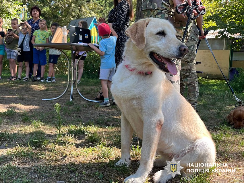 Правоохоронці познайомили дітей зі своїми чотирилапими вихованцями, розповіли про каністерапію та секрети дресирування собак.