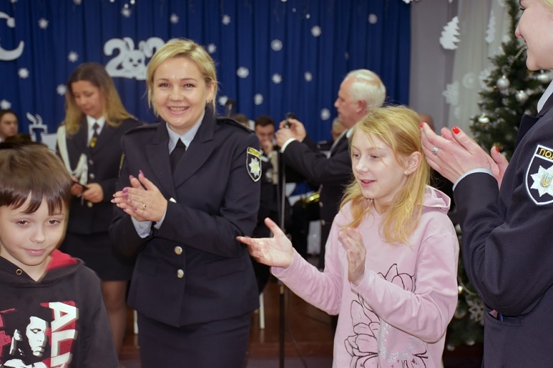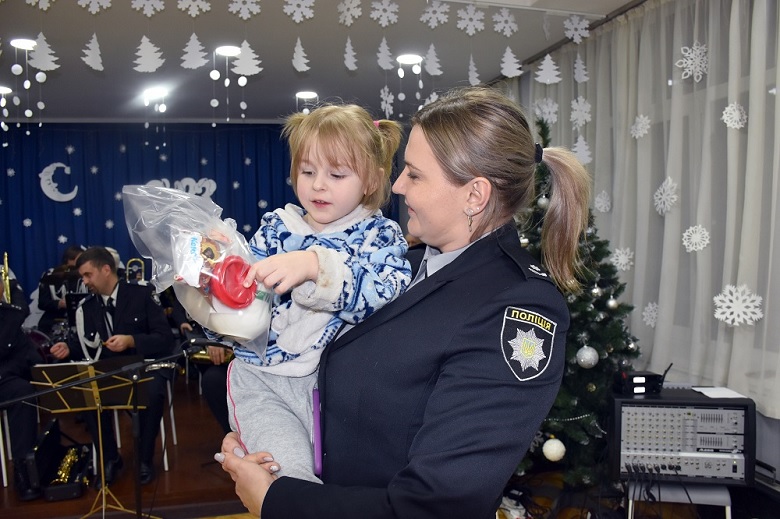 Малечу зустрічав поліцейський оркестр, під музичні композиції якого діти танцювали, із захопленням слухали пісні, посміхалась та отримали подарунки від правоохоронців.