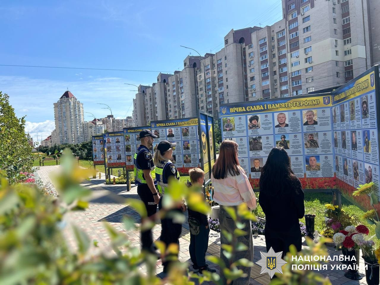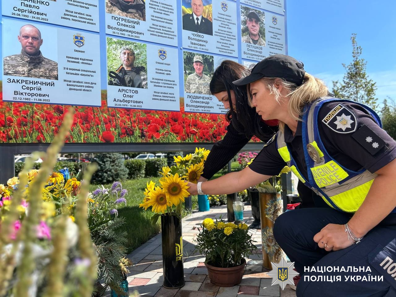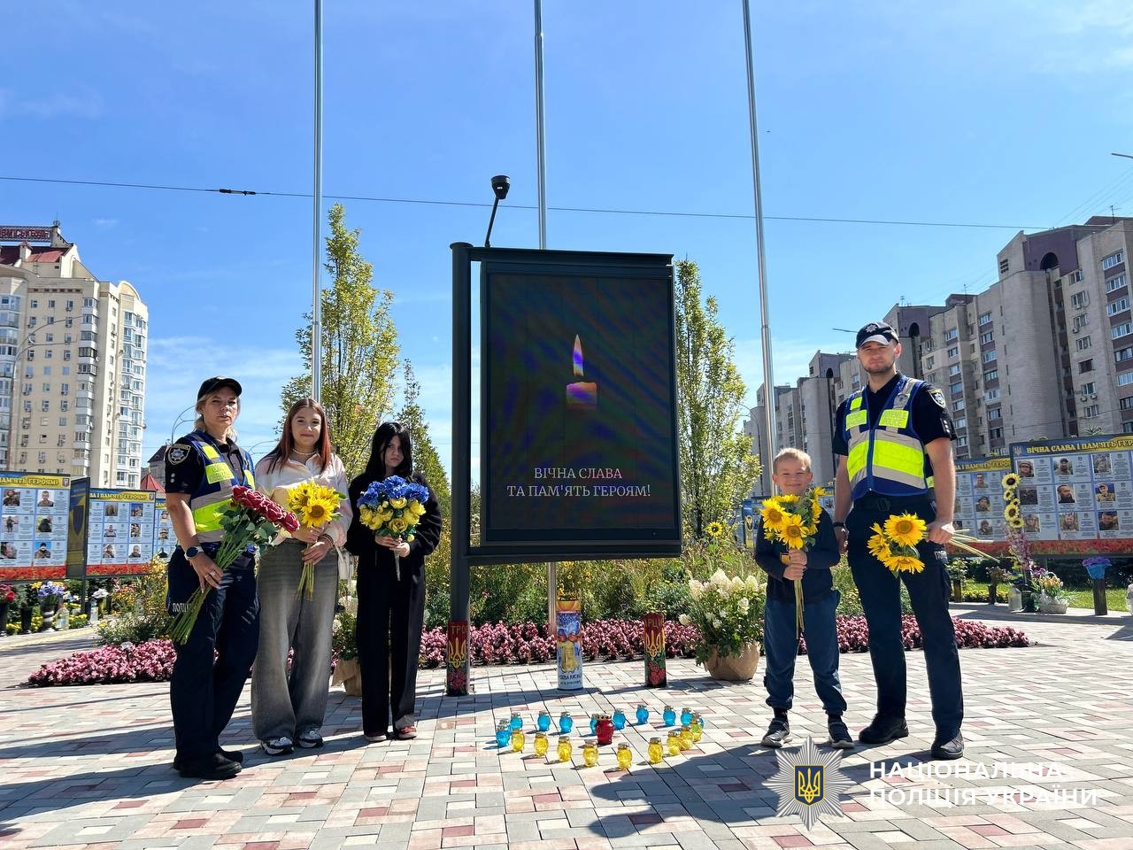 На Алеї пам’яті Героїв правоохоронці разом із юними киянами поклали квіти, схиливши голови у шані та вдячності.