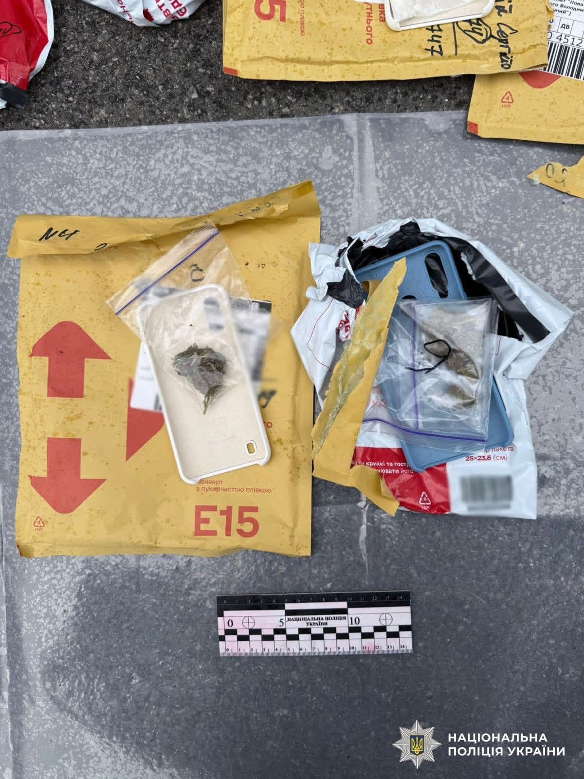 В одному з пакунків, під чохлом для телефону, правоохоронці знайшли канабіс. Подальша перевірка показала, що всі відправлення містили наркотичні та психотропні речовини — амфетамін, альфа-PVP, MDMA та канабіс.