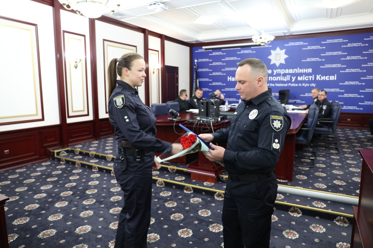 Начальник поліції Києва подякував колегам за мужність та злагоджені дії задля захисту громадян під час обстрілу столиці. Правоохоронцям вручили подяки, відомчі відзнаки НПУ та цінні подарунки.