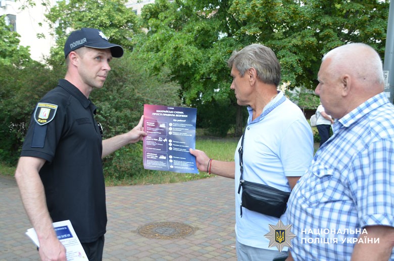 Під час бесід правоохоронці роз’яснюють громадянам про обережність та обачність у спілкуванні з незнайомцями, які можуть назватись соціальними чи медичними працівниками, представниками різних благодійних фондів, ветеранських організацій тощо. Не слід впускати до свого помешкання сторонніх осіб, обов’язково перевіряти інформацію про родичів, які нібито потрапили в біду або сумнівні рекомендації працівників банківських установ.