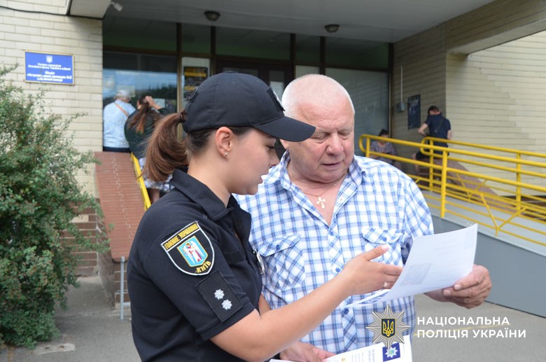 Поліцейські проводять профілактичні бесіди з врученням інформаційних листівок з рекомендаціями щодо власної безпеки для запобігання вчинення стосовно них правопорушень, зокрема шахрайств.
