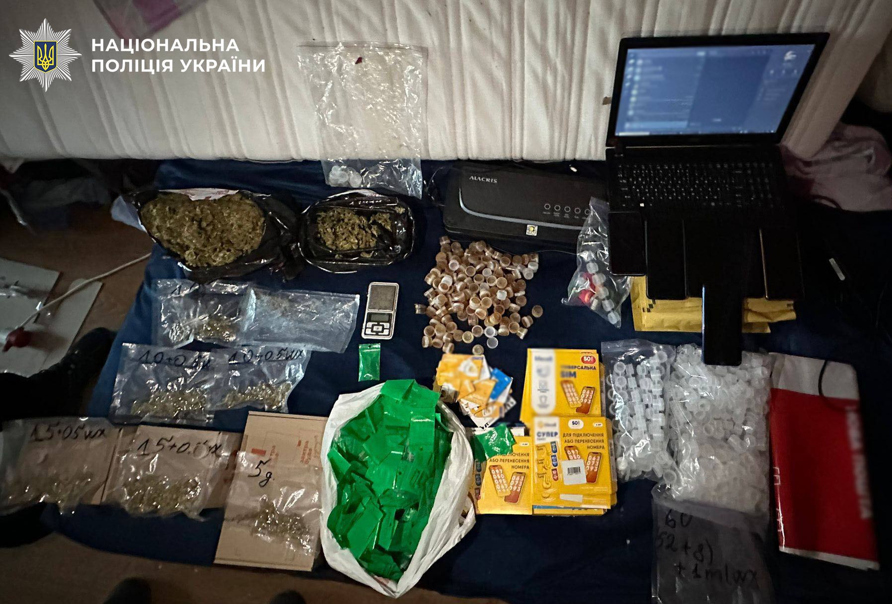 За місцями мешкання фігурантів слідчі провели обшуки, в ході яких вилучили рідину з екстрактом канабісу, понад кілограм канабісу, цукерки із вмістом тетрагідроканнабінолу, пристрої для паління, електронні ваги, поліетиленові пакети, а також гроші, які зловмисники отримали внаслідок злочинної діяльності. Сума вилученого за цінами «чорного ринку» складає понад 1 730 000 гривень.