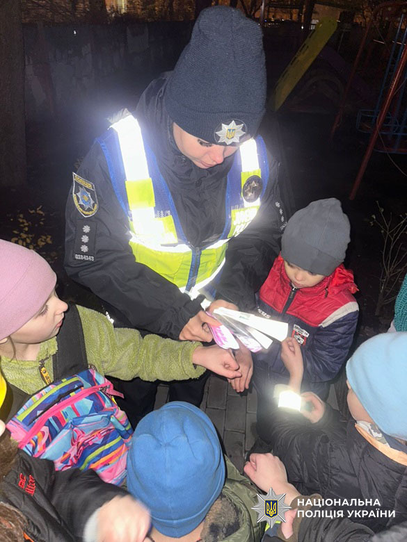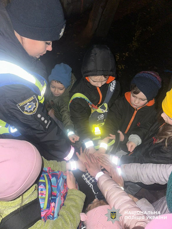 Під час зустрічі правоохоронці нагадали дітям про важливість дотримання правил дорожнього руху, зокрема у темну пору доби. Поліцейські пояснили, як правильно поводитися на вулиці, щоб бути помітними для водіїв та уникнути небезпечних ситуацій.