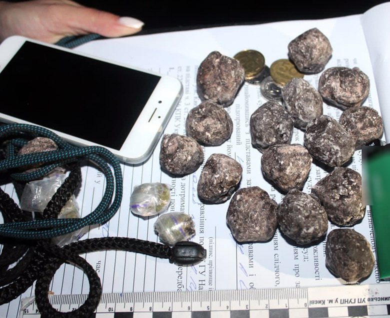 «В ході поверхневої перевірки ми вилучили 20 згортків замаскованих під каміння з речовиною, схожою на канабіс, а відтак раніше не судимого 37-річного уродженця Дніпропетровської області затримали у порядку статті 208 Кримінального процесуального кодексу України. Вдома у наркоділка ми провели невідкладний обшук, під час якого вилучили пакетик із наркотичною речовиною та пристрої для куріння. З’ясувалося, що чоловік замовляв у телеграм-каналі шишки канабісу, після подрібнював їх та збував на території району шляхом закладок».